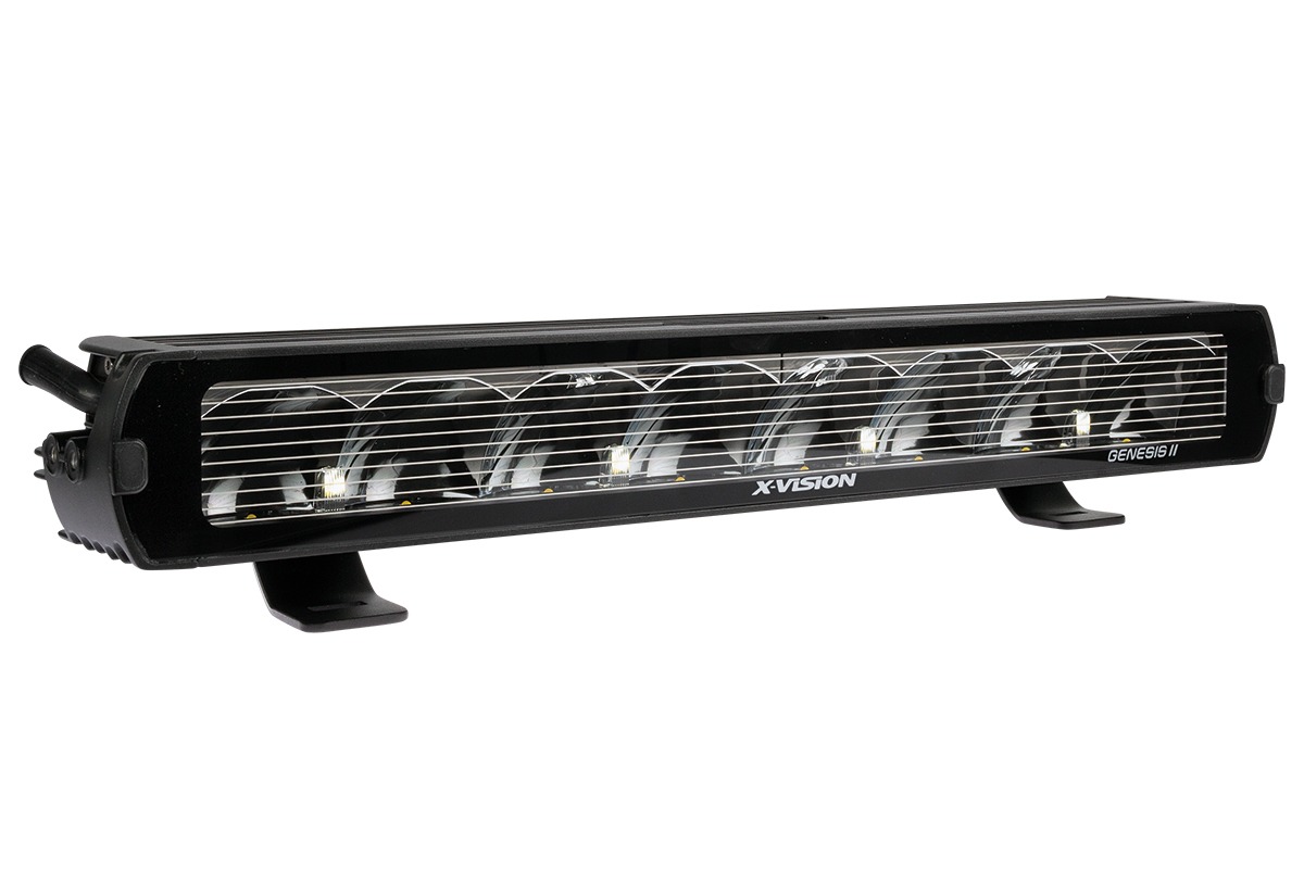 Genesis II sin rammeløse design er spesielt effektiv i snørike omgivelser, da snø og smuss ikke fester seg på linsen. Den elegante og moderne mørke reflektoren passer perfekt på alle typer kjøretøy og forbedrer estetikken. I tillegg har Genesis II 600 et edelsten-lignende parklys som er plassert mellom LED-modulene for en stilig touch.