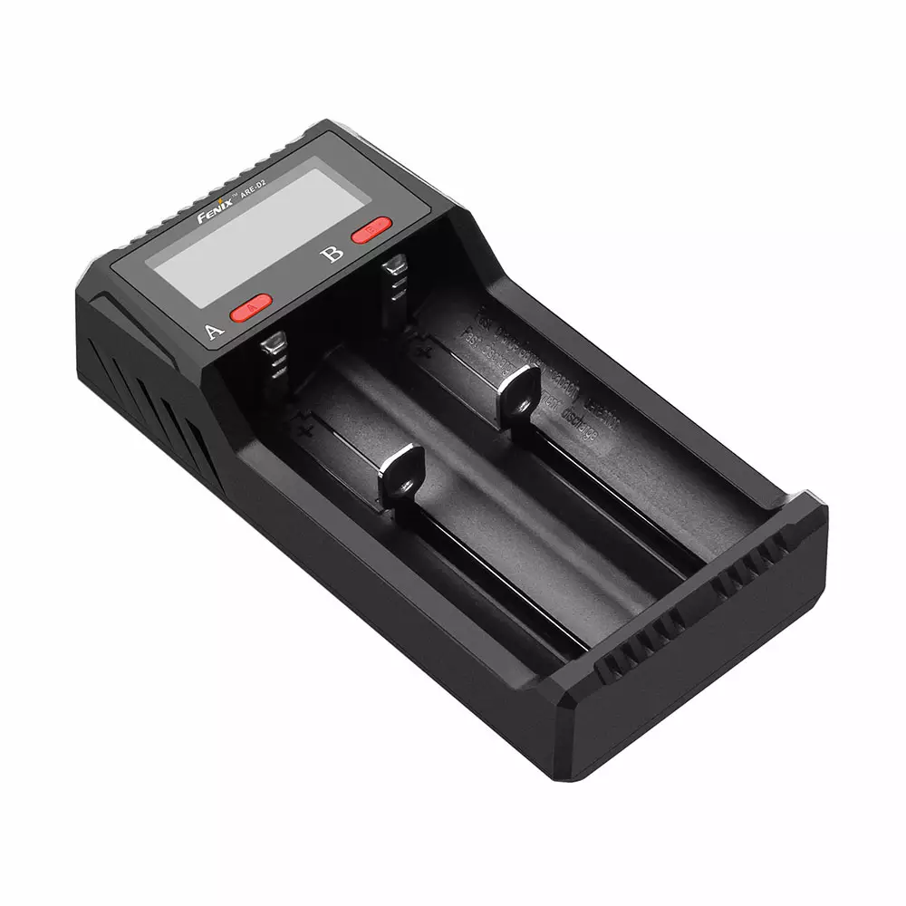 Fenix ARE-D2 er en mikroprosessorstyrt smartlader som gir rask og sikker lading av opptil ni ulike typer oppladbare Li-ion- og Ni-MH-batterier. Med ladestrøm opptil 2A kan batteriene lades raskt og trygt. Den presise LCD-skjermen viser ladestatus, utladningsstrøm og batteriets tilstand.