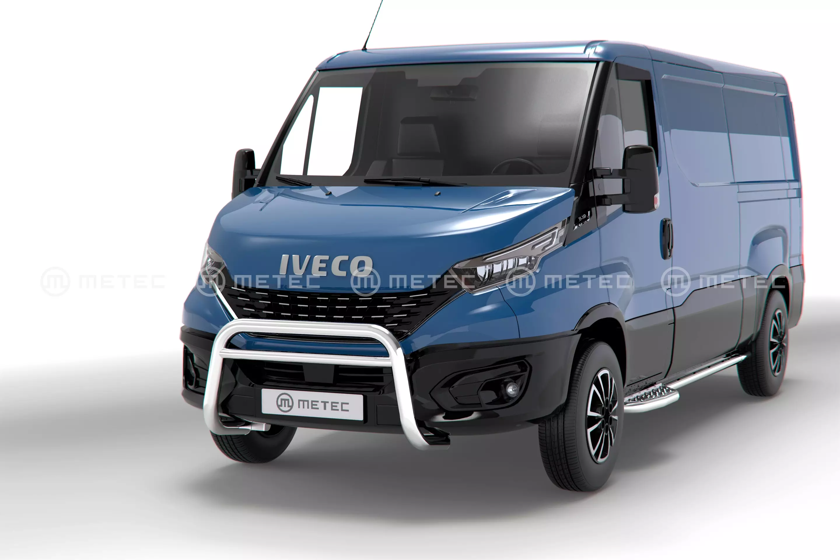 Frontbøyle til Iveco Daily 2019+ fra METEC. Frontbøylen er EU-godkjent og laget av rustfritt stål med blankpolert finish. Med en rørdiameter på 70mm. Frontbøylen er modelltilpasset for Iveco Daily 19+ for en rask og enkel installasjon. Produsert av Metec med kvalitets rustfritt stål og 2 års garanti.