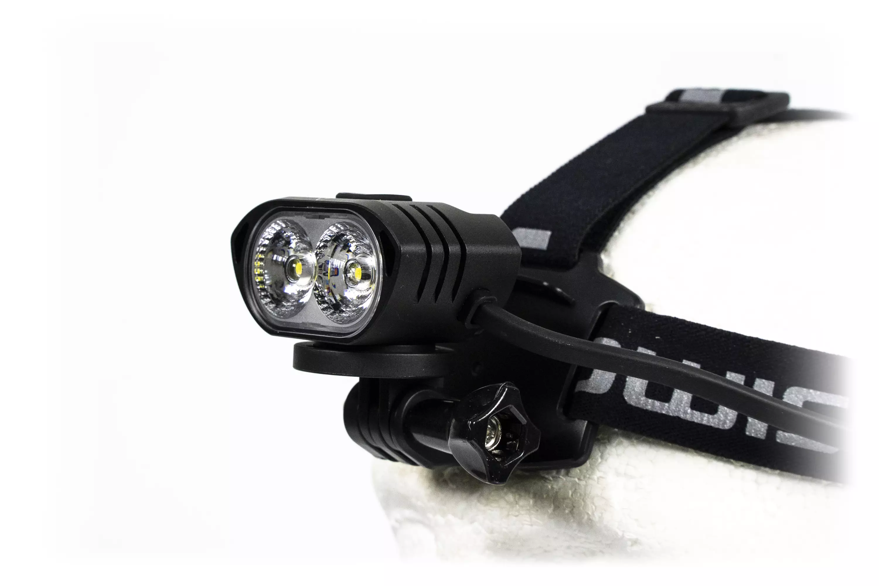 Denne hodelykten lyser opp med et bredt og sterkt lys, takket være en kombinasjon av to forskjellige linser. Dette gir utmerket synlighet flere titalls meter fremover. Det medfølgende 5200mAh batteriet kommer med en forlengelseskabel, noe som gjør det mulig å plassere batteriet i en lomme eller ryggsekk for økt komfort.