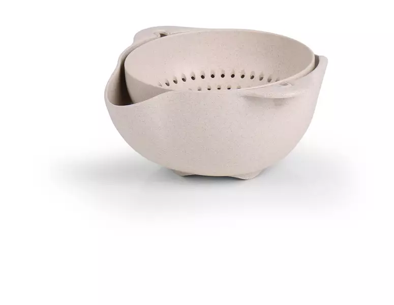 Bolle med sil og helletut • Bolle- og dørslagssett for skylling, avrenning og servering • Kan også brukes individuelt Materiale laget av hvete + PP, matsikker Tåler oppvaskmaskin Volum: 1,3 l... Les mer