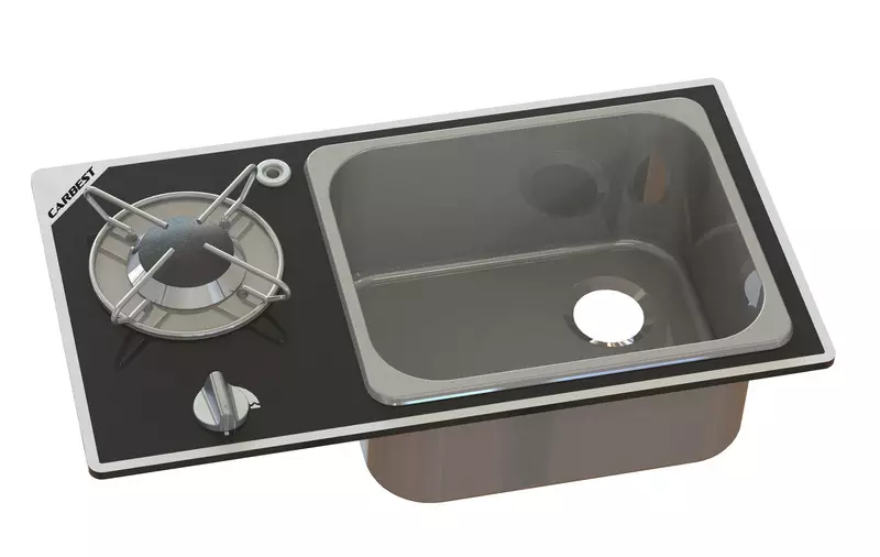 Carbest koke-/vaskekombinasjon gir en smart og plassbesparende løsning for bobiler og varebiler. Med én gassbrenner og en integrert vask i 8 mm herdet glass får du både funksjon og stil i ett produkt.
