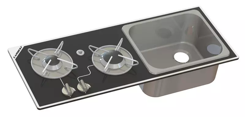 Carbest koke-/vaskekombinasjon er ideell for bobiler og varebiler. Med to effektive gassbluss og en integrert vask i 8 mm herdet glass, kombinerer den sikkerhet og moderne design.