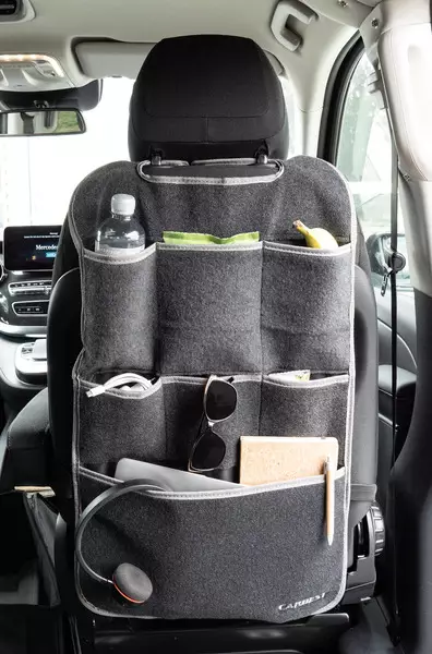 Denne praktiske filtorganisatoren er laget for fører- eller passasjersete. Den festes enkelt med stropper og kroker og har en stor lomme som passer til laptop.