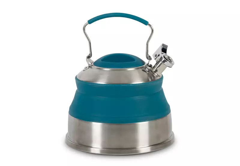 Silikon vannkjele med fløyte CARLA Volum: 2 liter Størrelse: Ø 18,5 cm, Høyde: 9/15 cm Materiale: Silikon, rustfritt stål (304) Vekt: ca. 0,54 kg Farge: Petrol