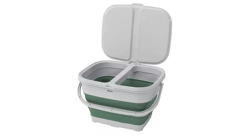 Denne sammenleggbare avfallsbøtten har 2 rom for avfallssortering og et lokk som holder innholdet skjult. Passer til 30-liters poser og leveres i en stilfull skyggegrønn farge.