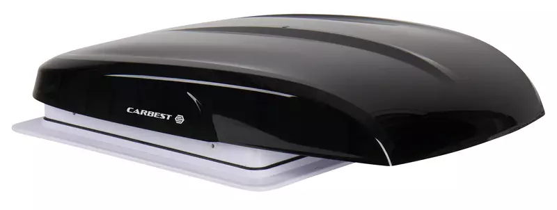 12V viften styres via fjernkontroll eller LED-panel. Den aerodynamiske kupolen forhindrer vanninntrengning.